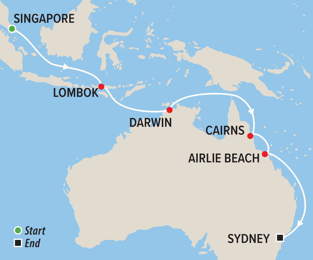 - Tropical & Coastal Destinations – Visit fascinating ports including Lombok in Indonesia, Darwin, Cairns and Airlie Beach, gateway to the spectacular Whitsunday Islands